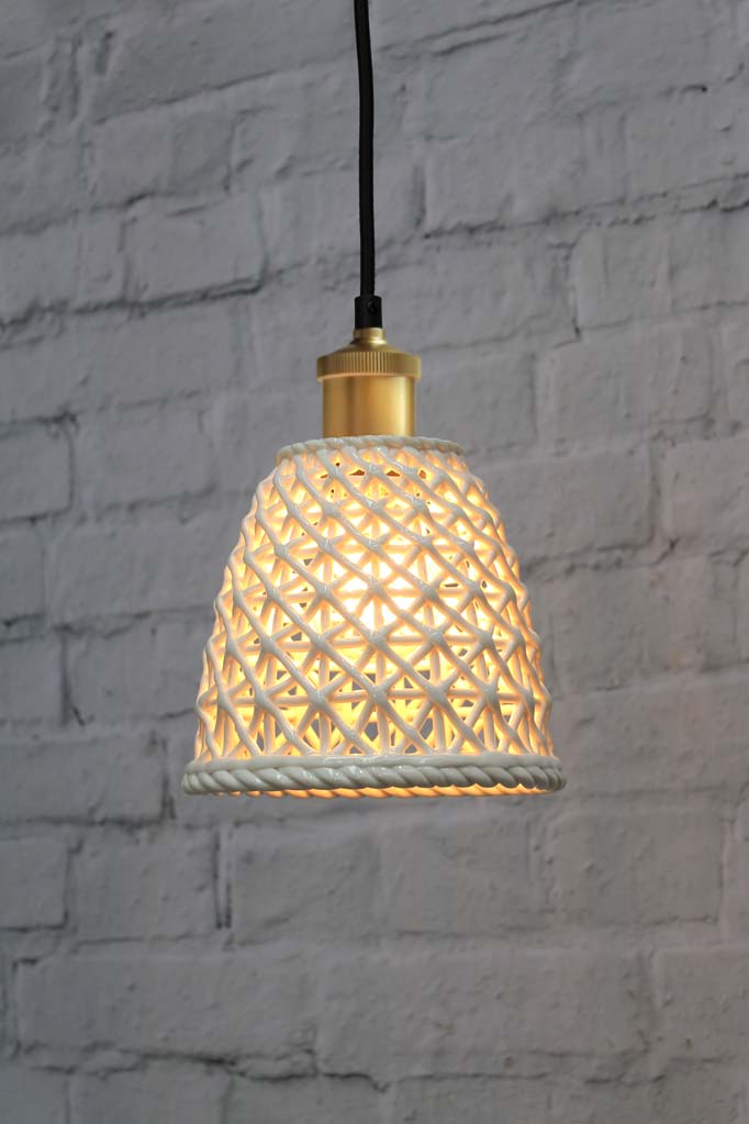 The Milan Ceramic Pendant Light represents an eclectic mix of antique Victorian with boho, coastal style. The shade has been made from delicate strips of ceramic which after being laid in place are fired with an opaque white glaze, giving it a glossy finish and extra strength. The ceramic pattern allows light to pass though and fill the room. Thanks to its unusual design, this light will be a statement piece in any space.