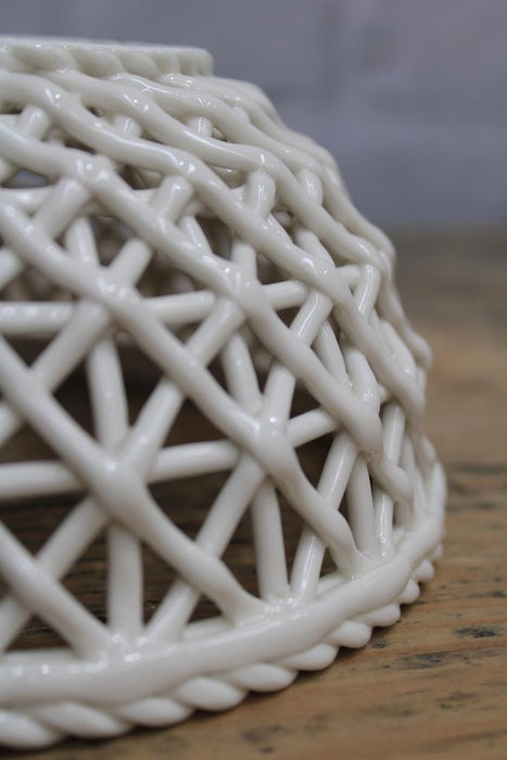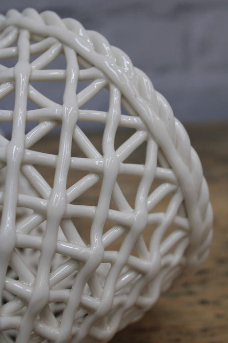 Exquisitely crafted from ceramic, the Milan Ceramic Shade radiates vintage charm with a contemporary appeal, making it ideal for both modern and traditional spaces. Strips of ceramic interlaced over one another combined with a glossy white finish, the Milan shade is strikingly idiosyncratic. Pair with either a flush or wall mount, a pendant cord, and a variety of other lighting accessories for a captivating effect within your space.