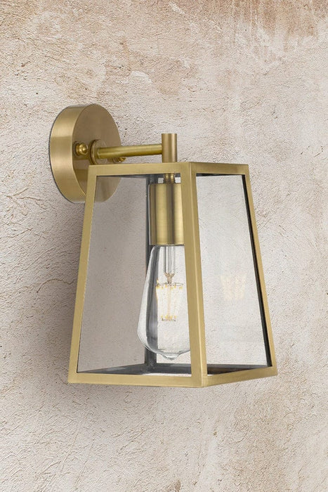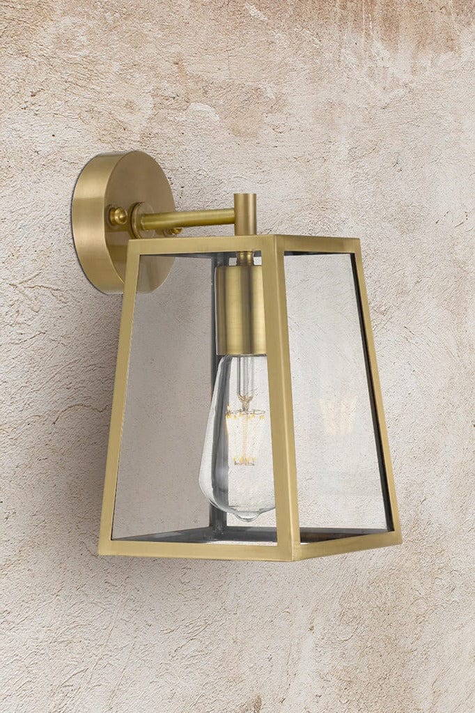 Give your wall a touch of simple vintage beauty with the Millport Outdoor Brass Wall Light. This light is made from high quality solid brass and is available in an antique brass or painted black finish as well as two sizes to suit a variety of design styles. Its tapered design with protective glass makes it a perfect option to elevate your exterior.