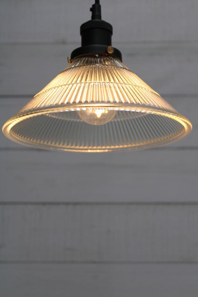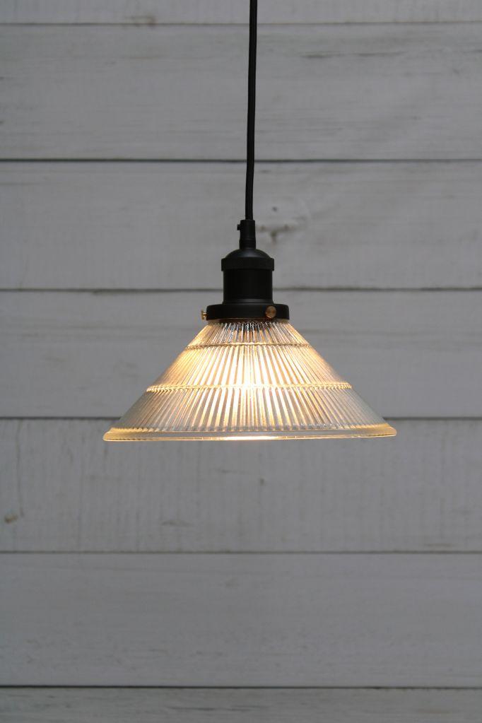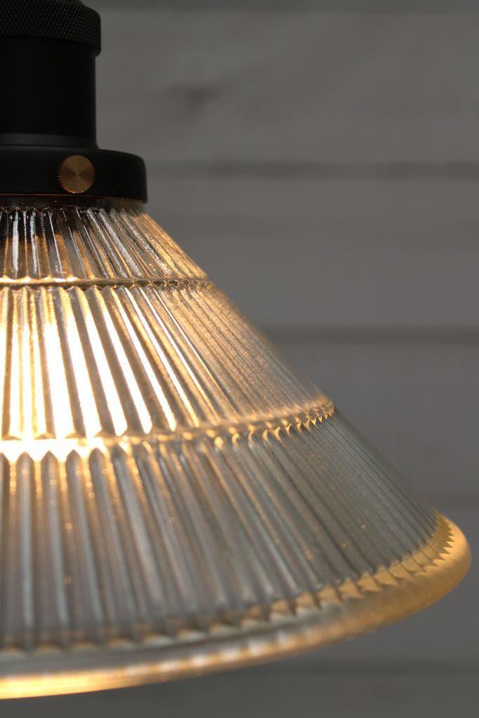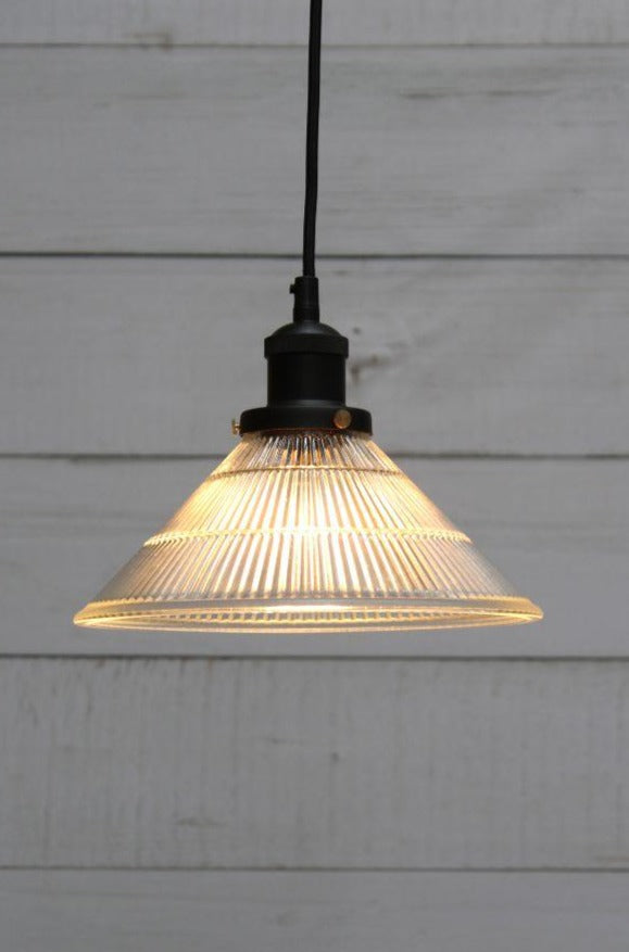 The Jackson Glass Pendant Light captures a vintage look for the modern age. Suspended by a simple black cord, the rippled glass shade is inspired by the original Holophane glass that was popular at the turn of the twentieth century. Hang individually or in multiples over the kitchen island, dining table or in the hallway. In a commercial setting, these lights would suit a vintage cocktail bar, urban restaurant or country B&B.