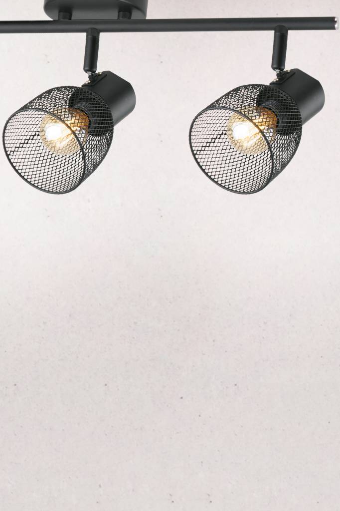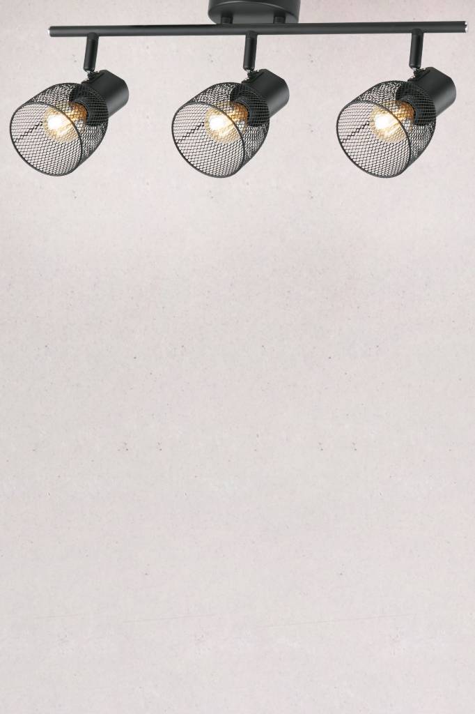 - This industrial style bar spotlight is comprised of a matt black ceiling rose, bar and three mesh basket lamp heads.