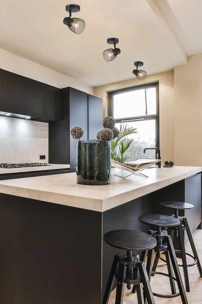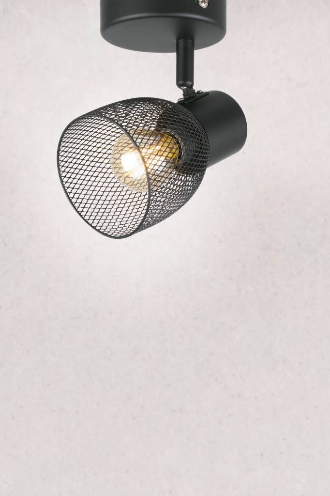 - This industrial style spotlight is comprised of a matt black ceiling rose and mesh basket shade.