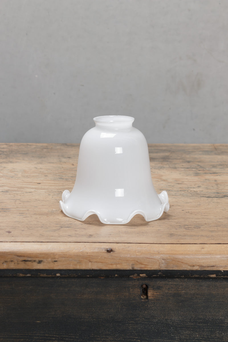 - The opal glass shade boasts a elegant scalloped edging, adding a touch of grace to its surface.