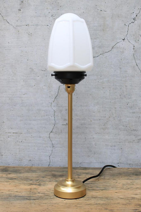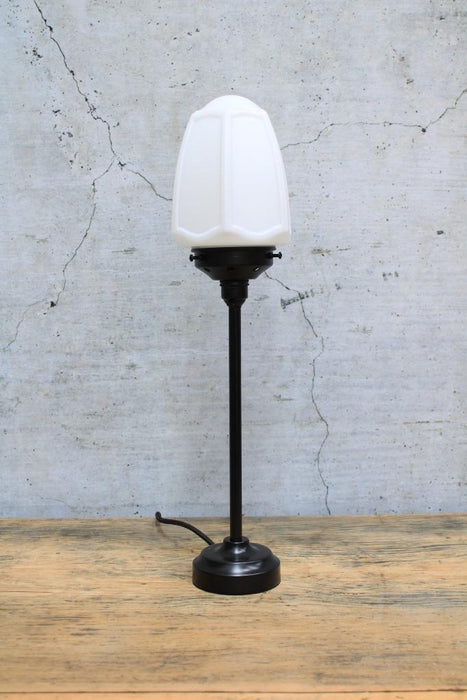 Add a subtle touch of Art Deco elegance to your living spaces with the Nouveau Glass Table Lamp. Its opal glass shade produces a diffused glow of light highlighted against a slender metal base. While a choice of two base finishes allows you to complement a range of decor, a push bar switch on lampholder adds to its ease of use. Placed on a side table or console table, this table lamp adds a timeless accent to your bedroom, hallway or living room.
