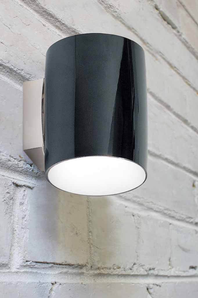 - This wall light is available in a black opaque finish.
