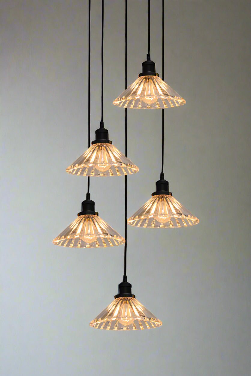 Constructed with vintage-inspired charm, the Paris Pleated Glass Chandelier exudes timeless elegance. Its clear glass shade boasts pleated detailing that enhances the play of light, creating a stunning crystalline effect. Available in three or five drop options, this chandelier adds a remarkable elegant touch to dining areas, cafes, and galleries alike.