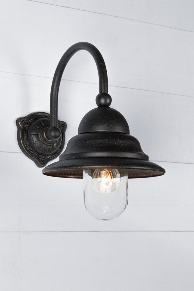 Bring nostalgic charm into your space with the Parkside Exterior Wall Light. This wall light evokes quintessential modern heritage design, and is reminiscent of the lights that illuminated old shopfronts and restaurants alike. Its metal construction is finished in antique bronze and includes a glass cover. Install either side of your balcony door, in a covered entrance or along a verandah.