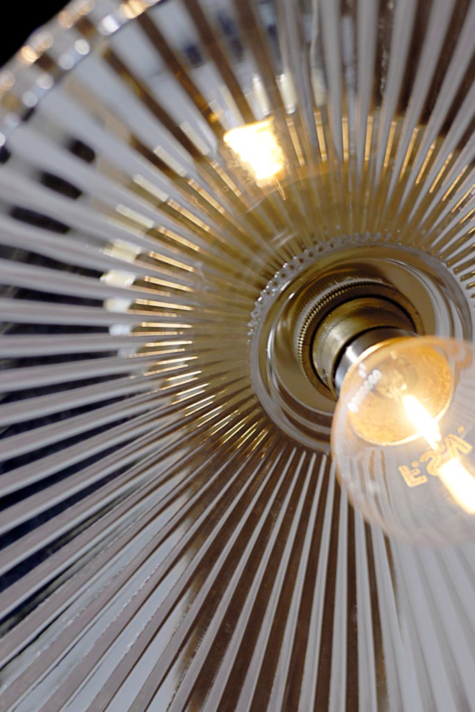 - Ribbed conical clear glass shade