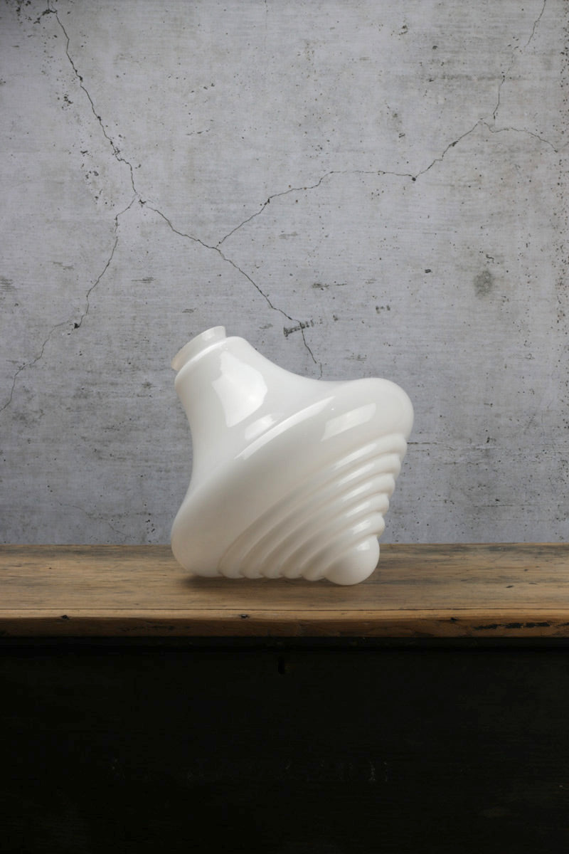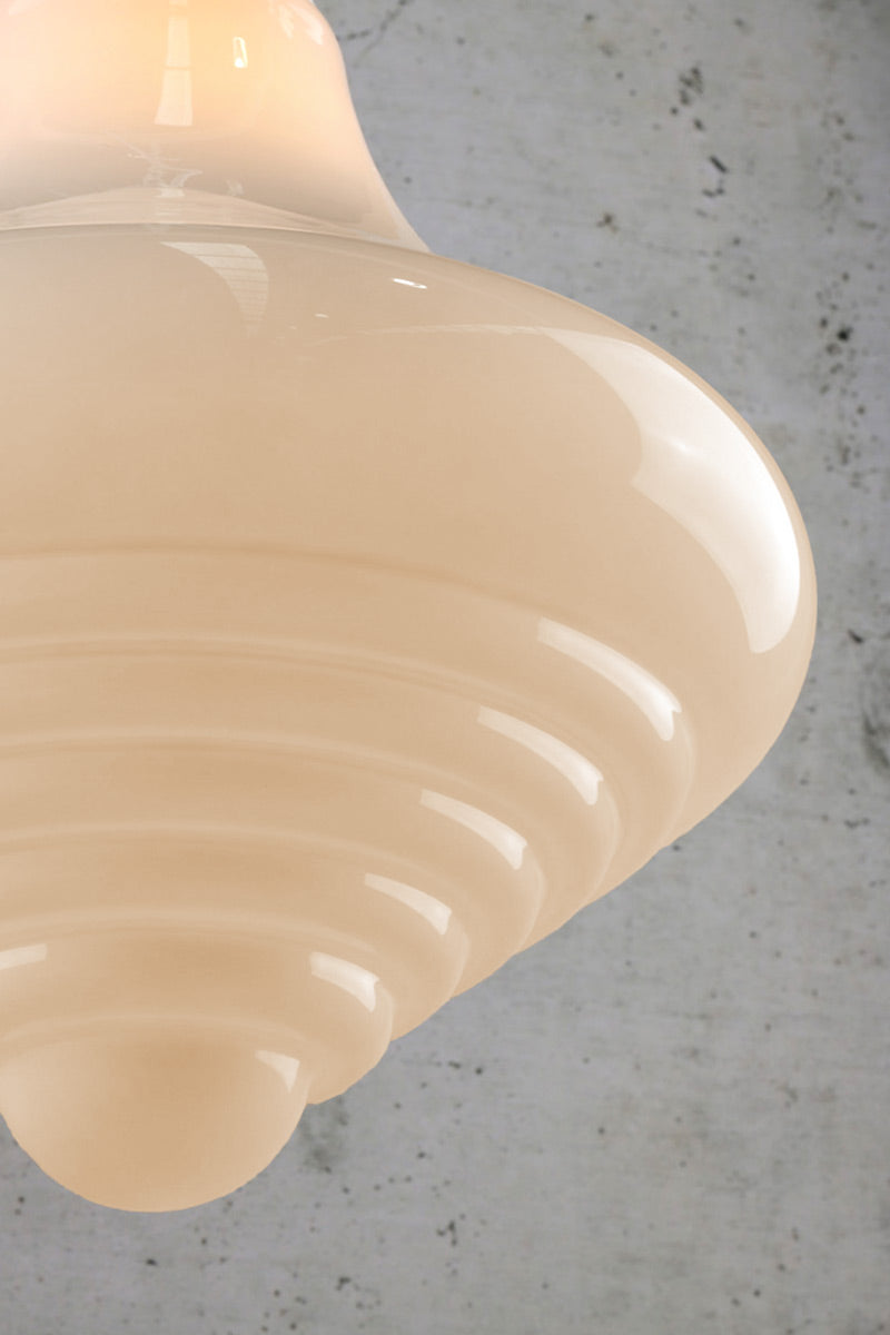 - Large handmade opal glass shade with classic 1930s aesthetic