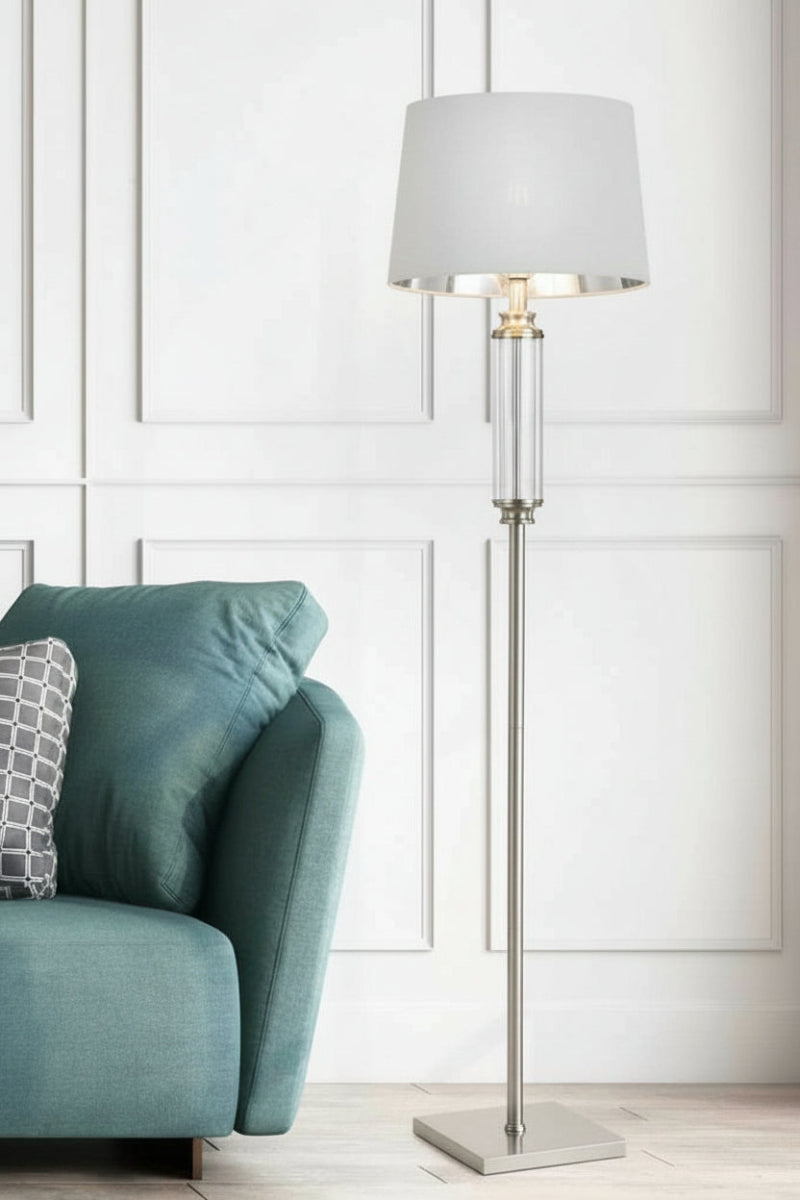 Add a touch of refined elegance to your living spaces with the Prestwick Glass Floor Lamp. Blending classic style with a sleek form and finish, this floor lamp comes in a selection of base and shade finishes to suit a range of modern and period themes. Either as a pair or a single finishing touch, it's the ideal ambient lighting solution for living rooms, study rooms and bedrooms.