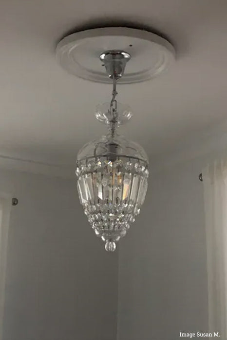Inject some glamour into your home with the Regent Crystal Pendant Light. The glass top boasts cut out detailing and hanging crystal beading which helps to refract light and create a stunning visual display. Display this crystal pendant as the centre piece in a formal dining room to wow your guests. Commercially it would add an elegant feel to a chic tea room, stylish bridal salon or vintage-inspired cocktail bar.