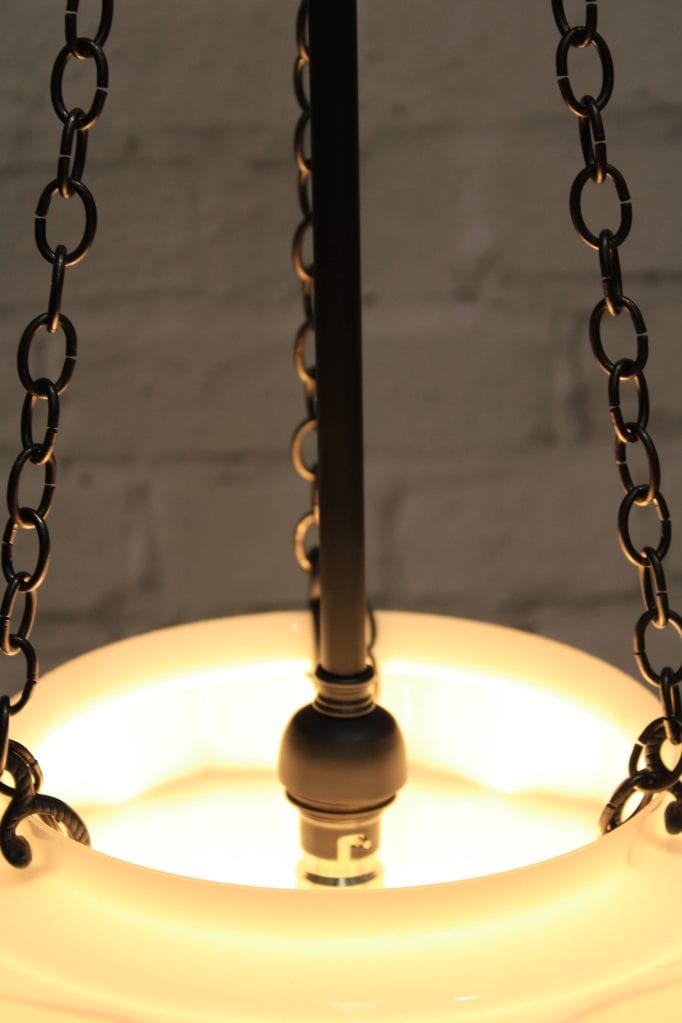 • The pendant light fixture is handmade from quality brass and is available in matt black or antique bronze finishes. Florentine bronze, Satin Brass and Satin Nickel finishes are also available upon request. Please contact us if you wish to have your chain and rod fixture in these finishes.