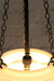 • The glass shade measures 270mm in diameter and is 180mm in height. It is suspended by three antique style chains with hooks that latch to the upper lip of the shade.