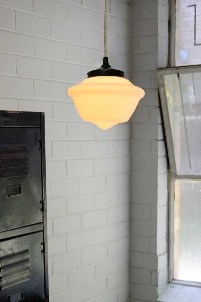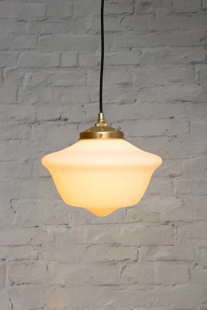 The Chelsea Schoolhouse Pendant Light is a vintage classic. Popular in the 1920s, the schoolhouse shade is a beautiful reproduction of the classic lights found in libraries, schools and courthouses of that era. Complete with a selection of suspension cords, they give classic flair to any bedroom or entryway. As seen on MasterChef Australia!