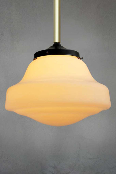 These Yarra schoolhouse glass shade pendants are a timeless classic. Popular in the 1920s these schoolhouse shades are a beautiful reproduction of the classic lights which were mainly found in libraries, schools and courthouses within that era. A stylish choice for Californian bungalow lighting or any homes that feature high ceilingsThe schoolhouse shade's clean lines give it that timeless appeal which can be incorporated into any contemporary or traditional room.