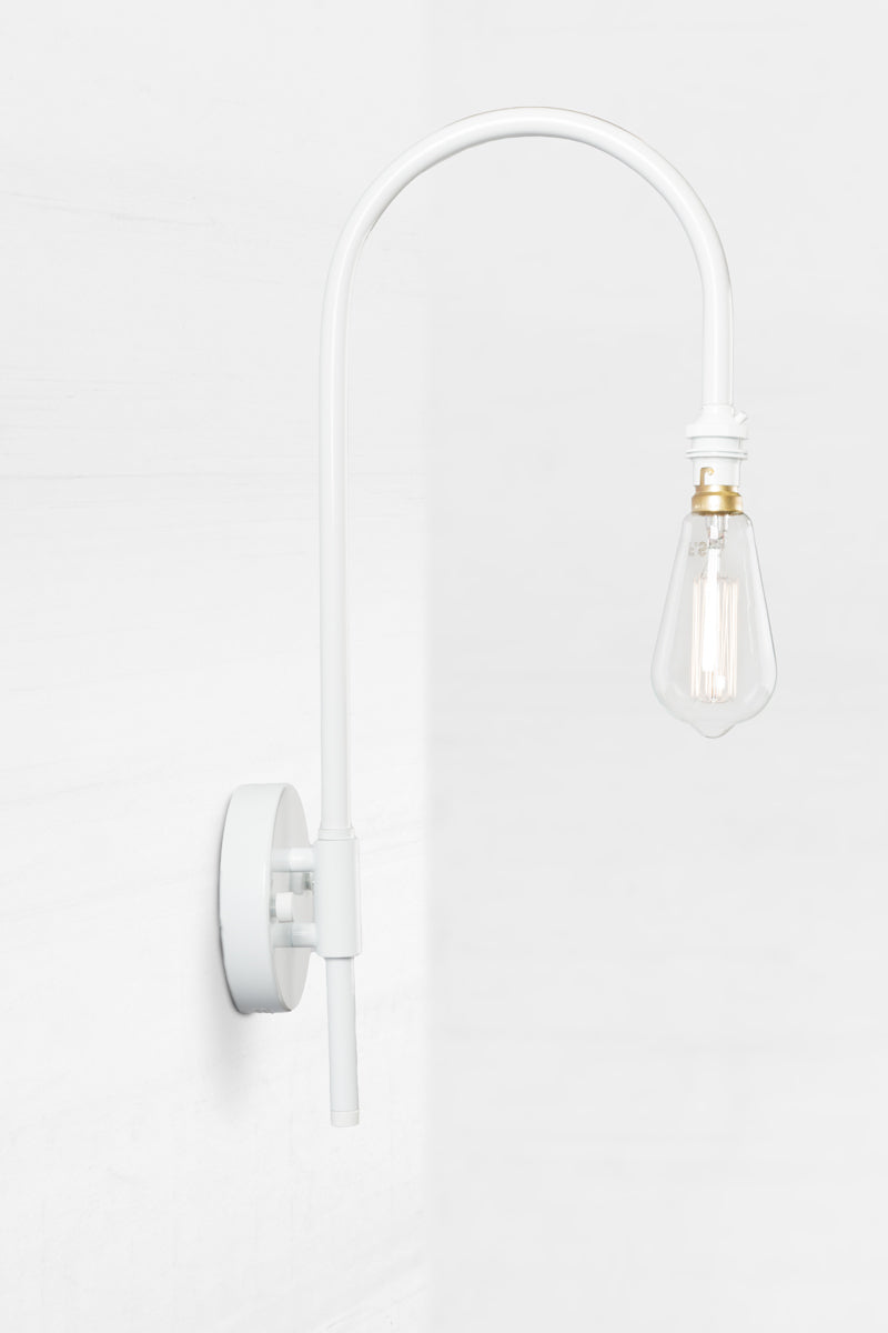 • The wall arm is made of steel and is available in a black, gold/brass or white finish.
