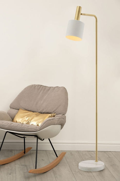 Defined by a sleek form and finish, the Shergolds Marble Floor Lamp makes an understated statement in any contemporary interior. Accented with brushed brass metalware and a white marble base for timeless flair, its adjustable shade comes in two matt finish options to complete a functional feature. Paired with a clear cord with foot switch for ease of use, this floor lamp is ideal to illuminate dark corners in your living room, bedroom and home office.