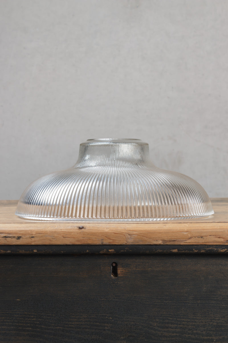 • The holophane style ribbed glass shade is pressed glass. Bubbles, lines, slight surface imperfections or discolouration are characteristics of all pressed glass. They are not considered defects.