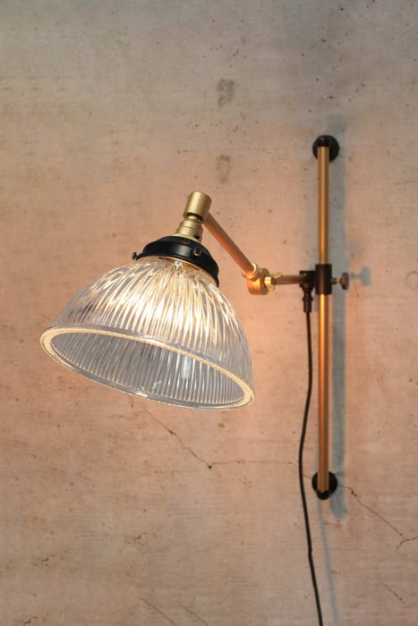 The Como Swing Arm Glass Wall Lamp has a classic look that will bring vintage industrial charm to even the most modern setting. The vintage style Holophane glass shade, in clear or amber finish, brings timeless style while its metal swing arm adds to its character and functionality. The swing arm can be moved up or down along the main pole, and once in place, the arm can swing up or down, making it an ideal task light for activities such as working or reading. Complete with a cord and plug for easy installation, it makes an ideal update for your shop, restaurant, café interior or home. Available only at Fat Shack Vintage!