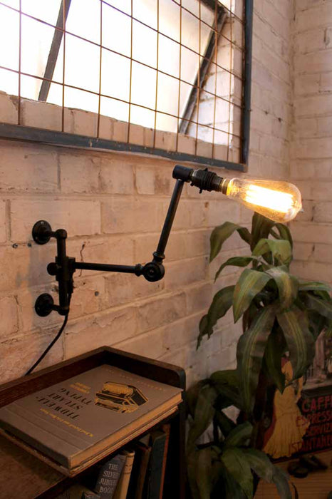 This Swing Arm Light Fixture with Wall Plug has a classic industrial look that would be right at home in both a contemporary or vintage setting. This swing arm light fixture has a black matt or gold brass metal swing arm that can be moved up or down the main pole. Once in place, the arm can then 'swing up' or 'swing down', making it an ideal task light for activities such as working or reading. It will easily add a touch of industrial character to your shop, restaurant, café interior or home.