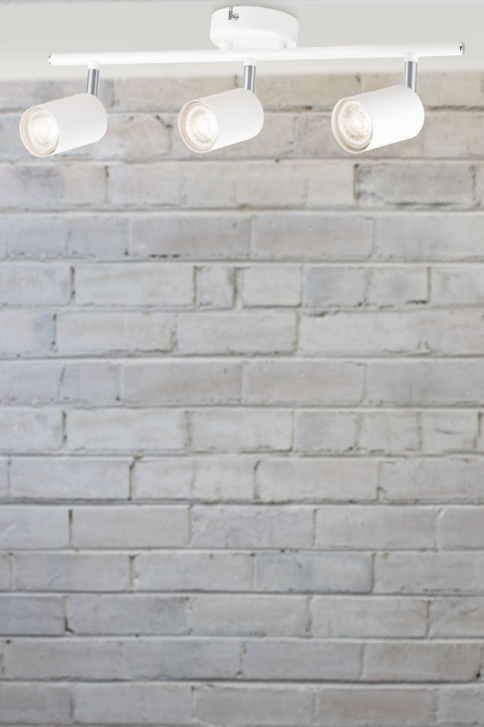 - This bar spotlight is comprised of a matt black or white body, bar fixture and ceiling rose. The stem connecting the lamp heads to the bar is finished in chrome.