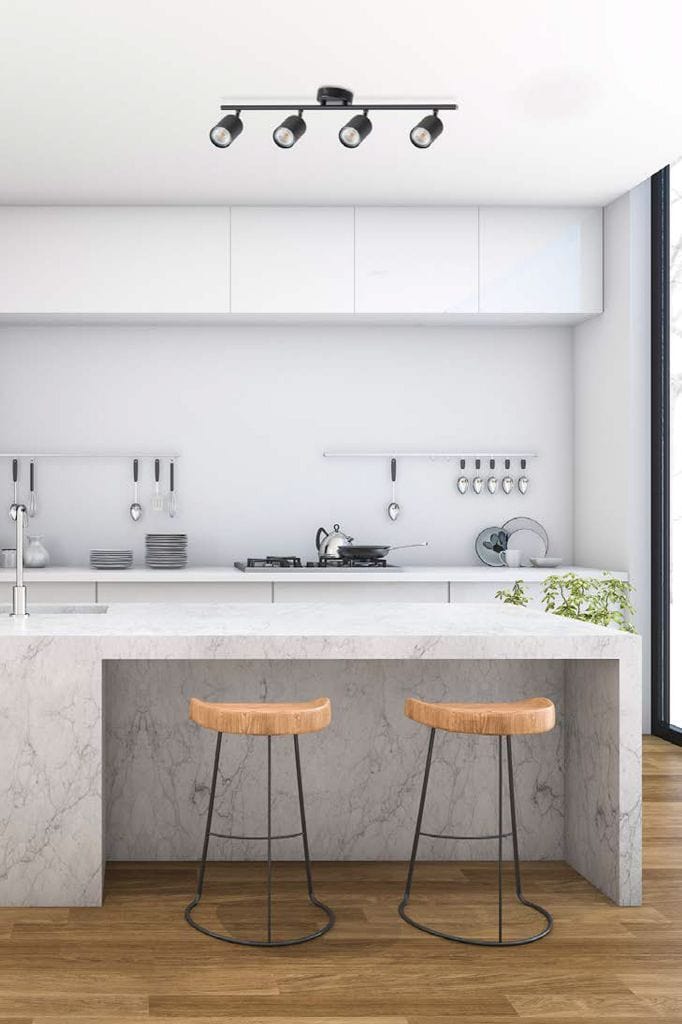 Add form and function to your interior with the Teton 4 Light LED Spotlight. Available in black, this adjustable bar spotlight is a seamless addition to modern interiors. Place above a kitchen island or dining table for functional task lighting or in a multi-purpose room for effective area lighting. In a commercial setting, this light would add a modern touch to an urban office space, minimalist retail space or stylish salon.