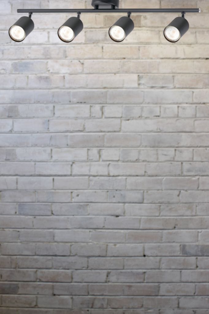 - This bar spotlight is comprised of four lamp heads, bar fixture and ceiling rose finished in matt black. The stem connecting the lamp head to the bar fixture is finished in chrome.
