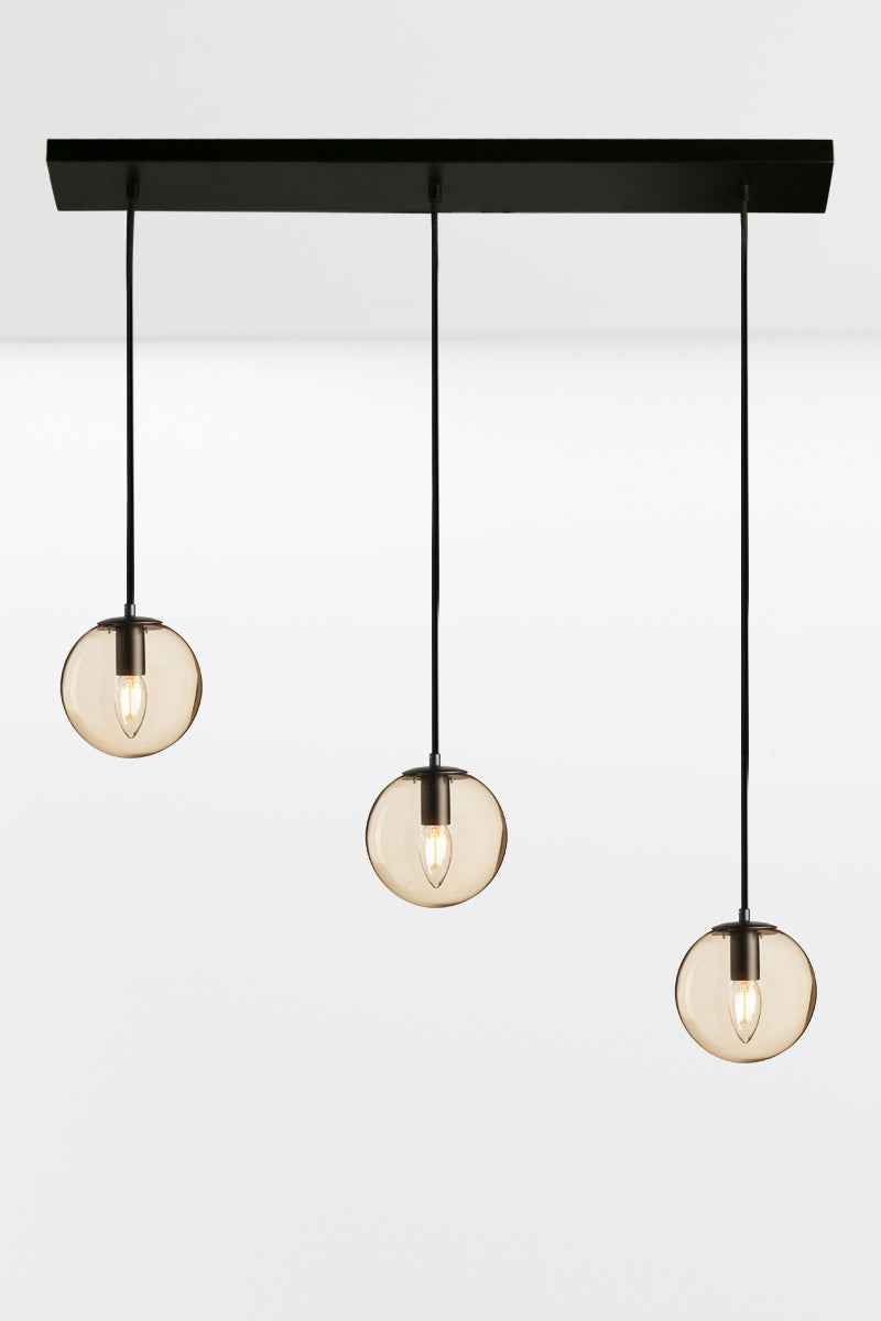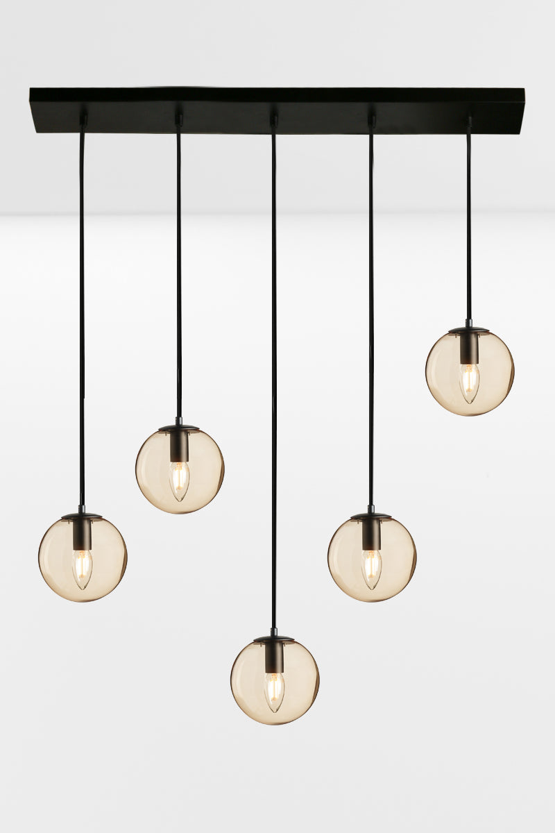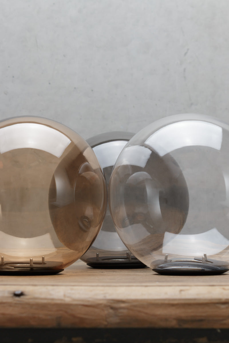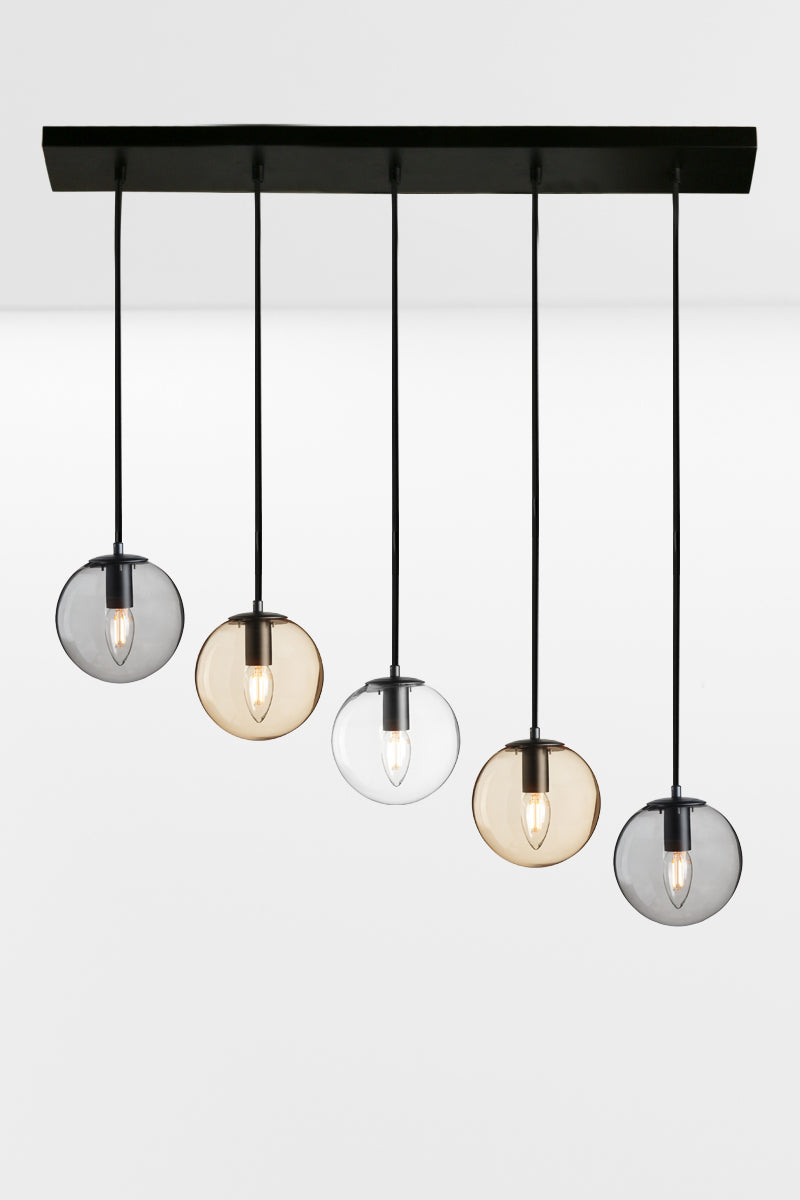 - Your choice of blown glass spheres are available in choice of three finishes: Amber, Clear or Grey.