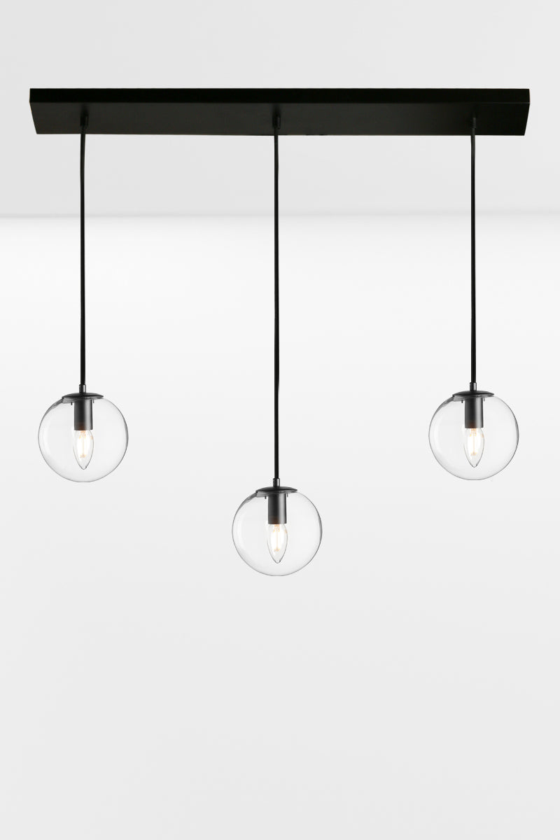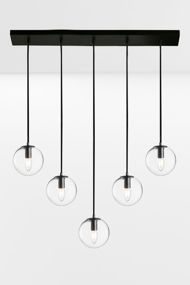 Revitalise your modern interior with the Tully Glass Linear Pendant Light. Featuring coloured glass design or a clear transparent glass sphere, suspended on a black braided cord, available in various configurations. Perfect for both residential or commercial spaces, it effortlessly blends with a wide range of design styles.
