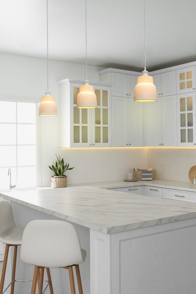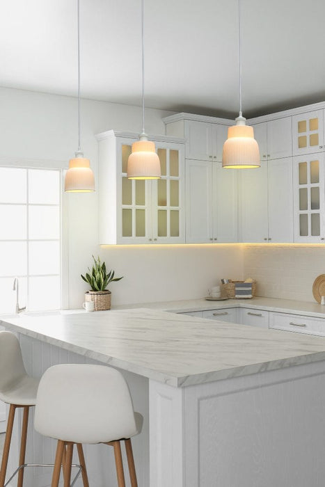 Add an element of sleek, modern-classic design to your interior with the Verona Ceramic Pendant Light. With a mid-century inspired design, this pendant light is made from white, unglazed ceramic. In addition to giving the shade a matt surface finish, this also allows some light to pass through the walls of the shade, transforming the pendant when switched on. The simple yet elegant design makes this light ideal in a single feature, or paired in multiples to uplift a space.