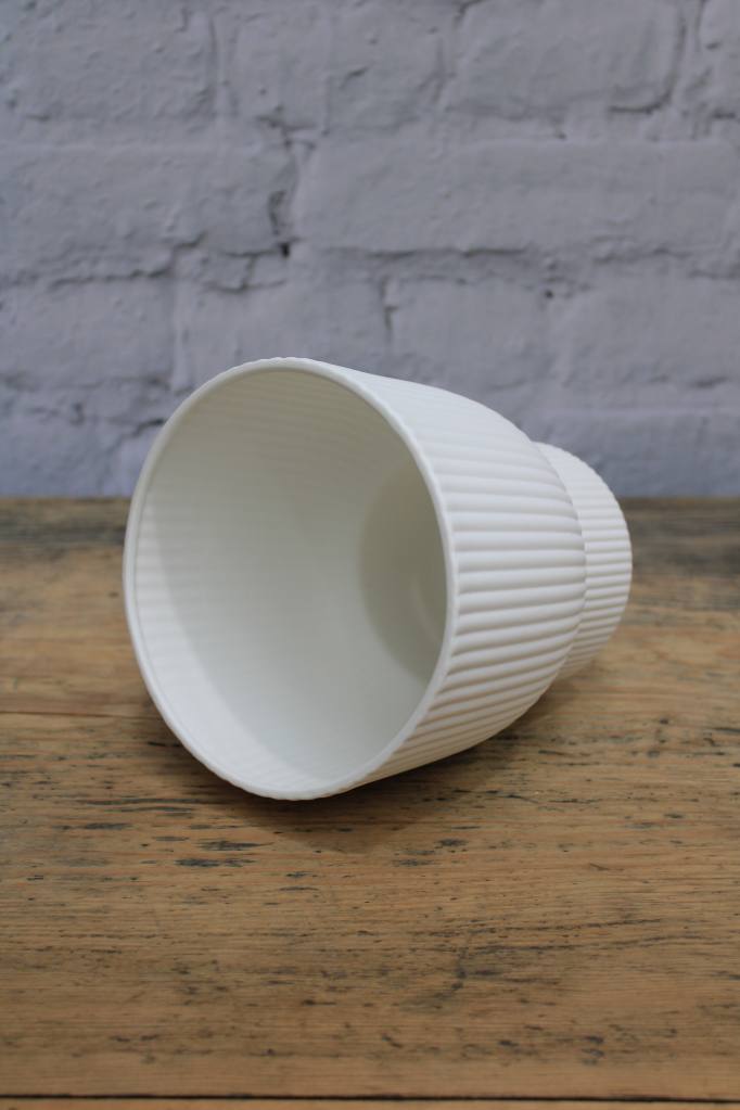 - Constructed from ceramic with a pleat detailing.