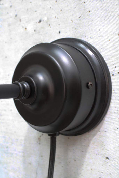 - Its gooseneck wall arm is made of steel and is available in a black, gold/brass or white finish.