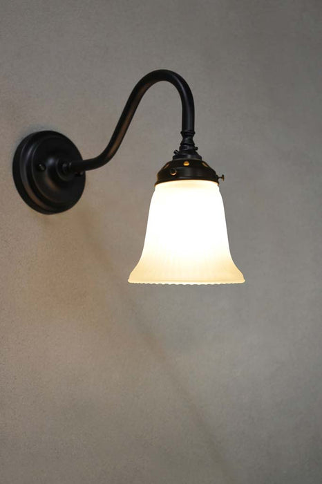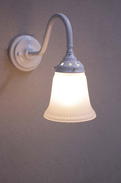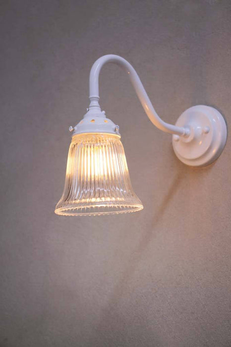 The Victoria Gooseneck Vanity Wall Light features a vintage inspired design that honours the lighting aesthetics of the early 1900s. Its holophane glass shade, available in either opal or clear ribbed finish is as practical as it is elegant. Mounted on a steel gooseneck sconce with a choice of finishes, it’s an ideal accent for bathrooms powder rooms or entryways.