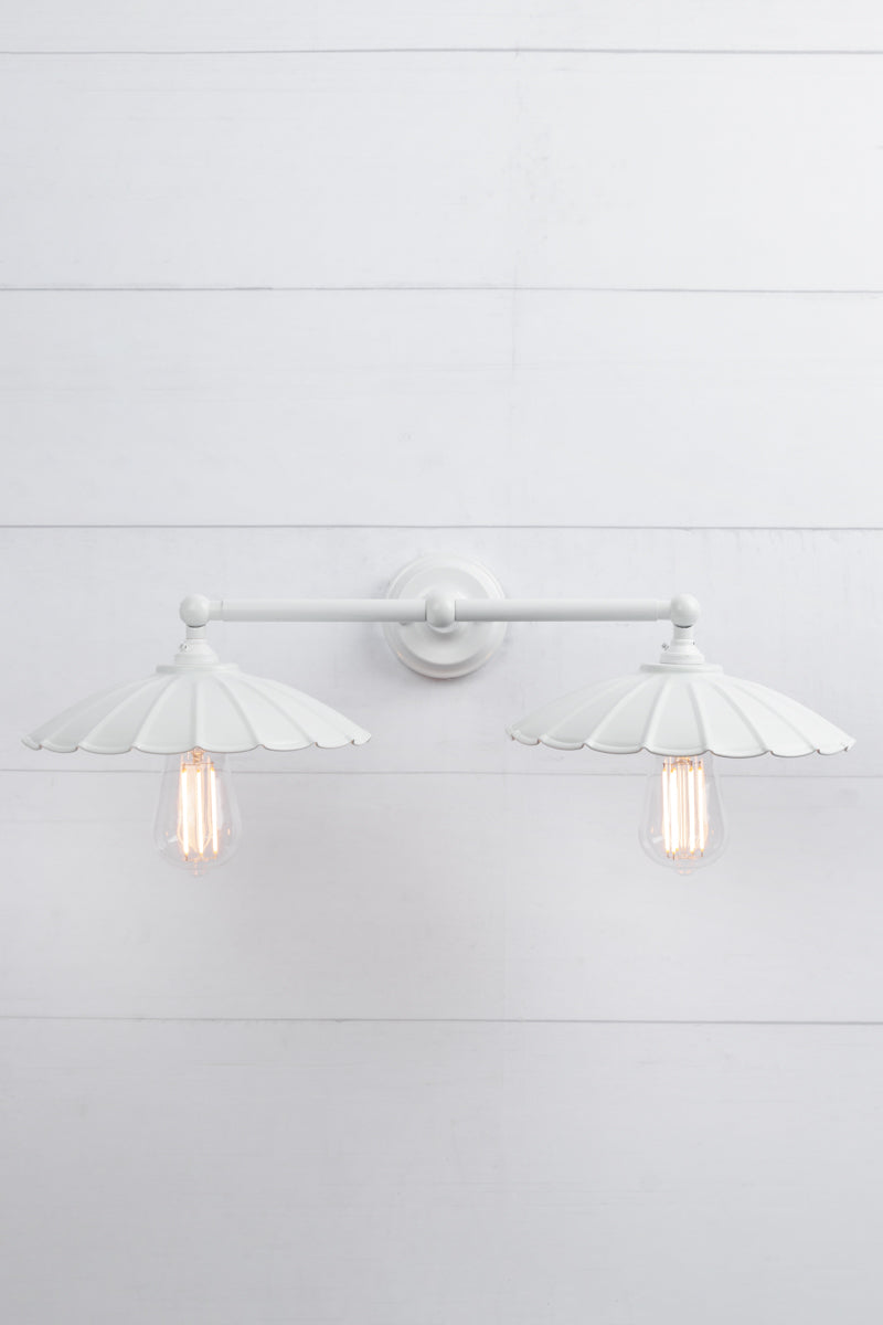 - Its two steel scalloped shades come in matt black, white and rust painted finishes.