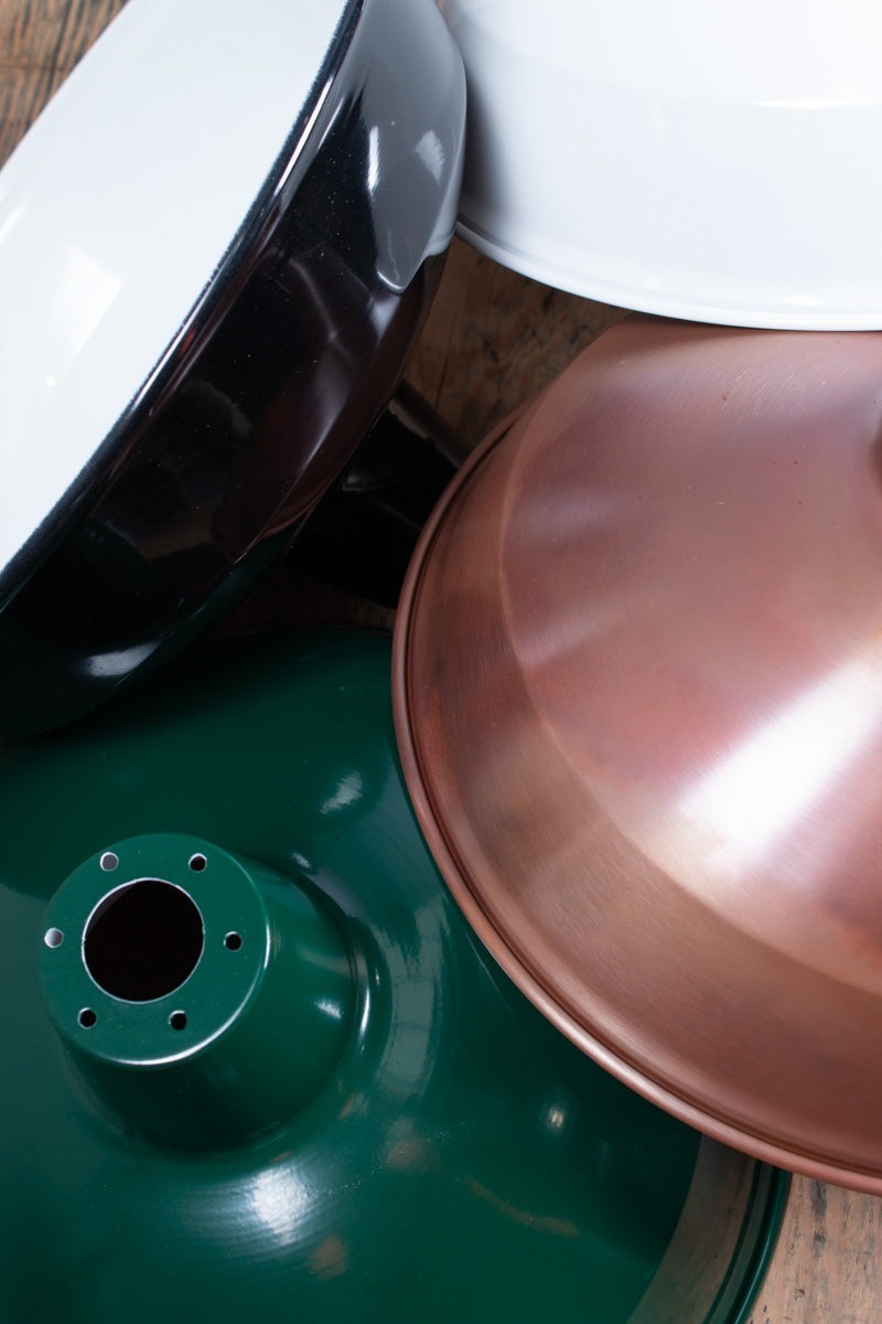• Our copper shades are made with 100% natural materials. The finishes are not designed to be a uniform, consistent finish. A consistent finish can only be achieved through electroplating over cheaper materials. The beauty of choosing natural materials are the characteristics of the imperfections and patina which continue to develop over time. The imperfections are not considered defects.