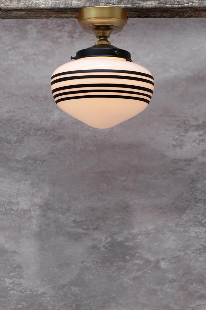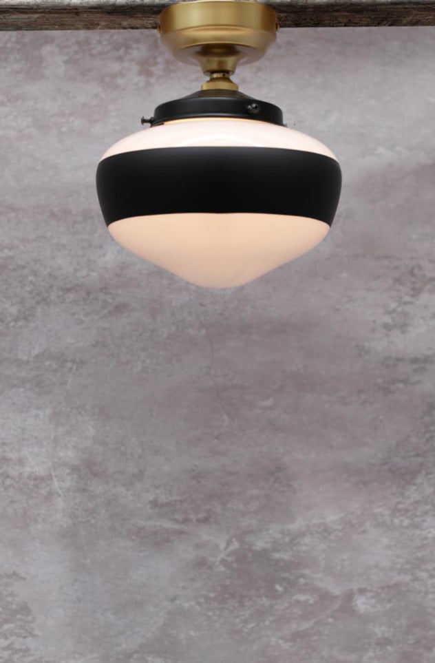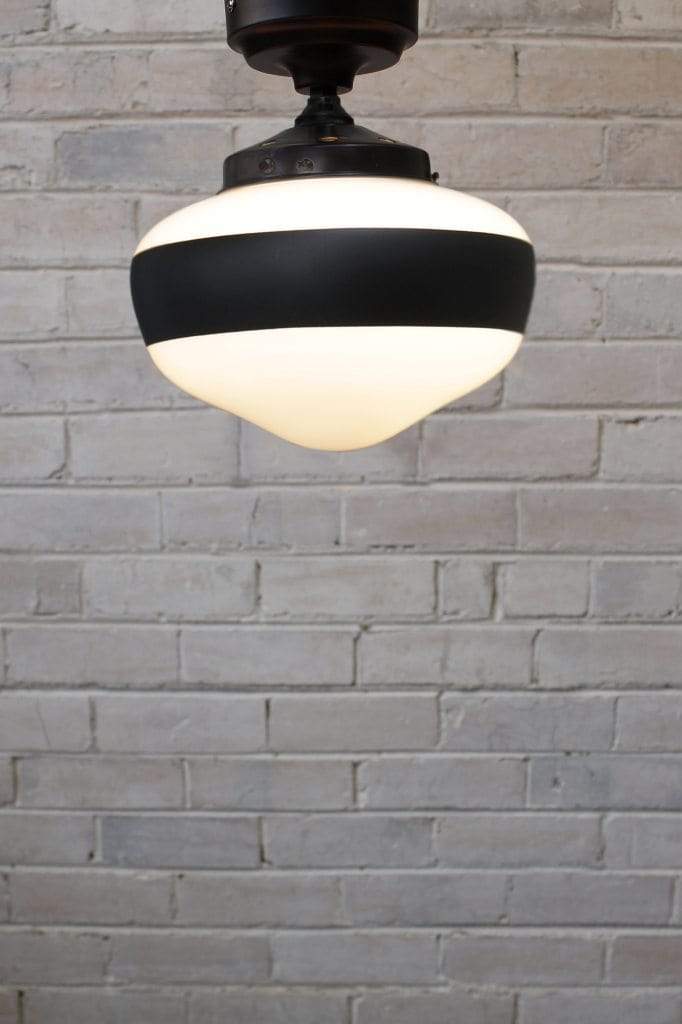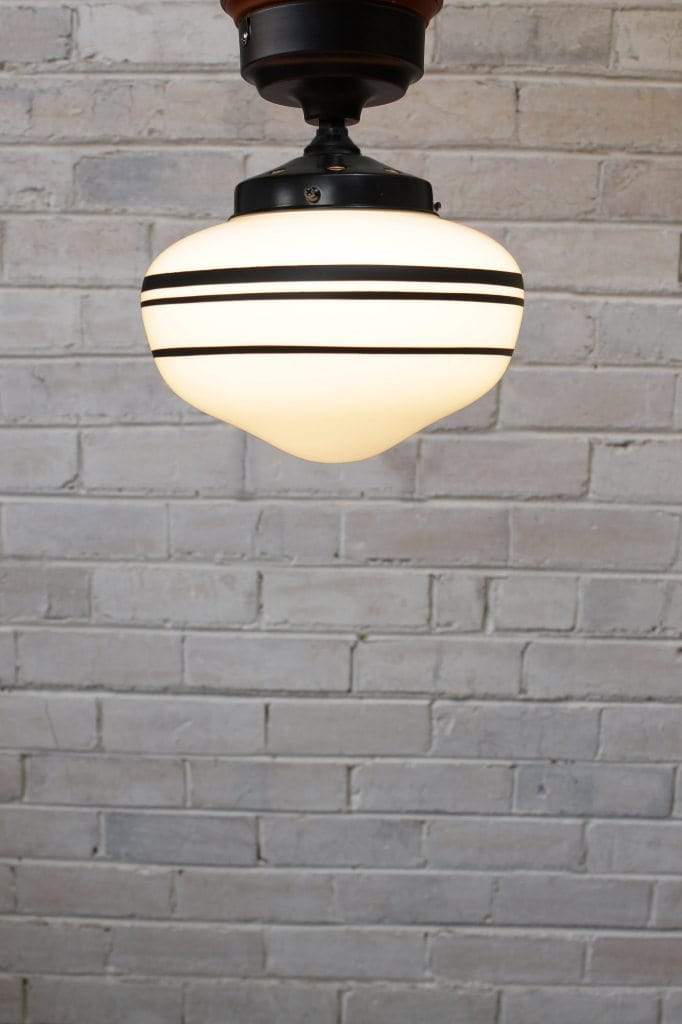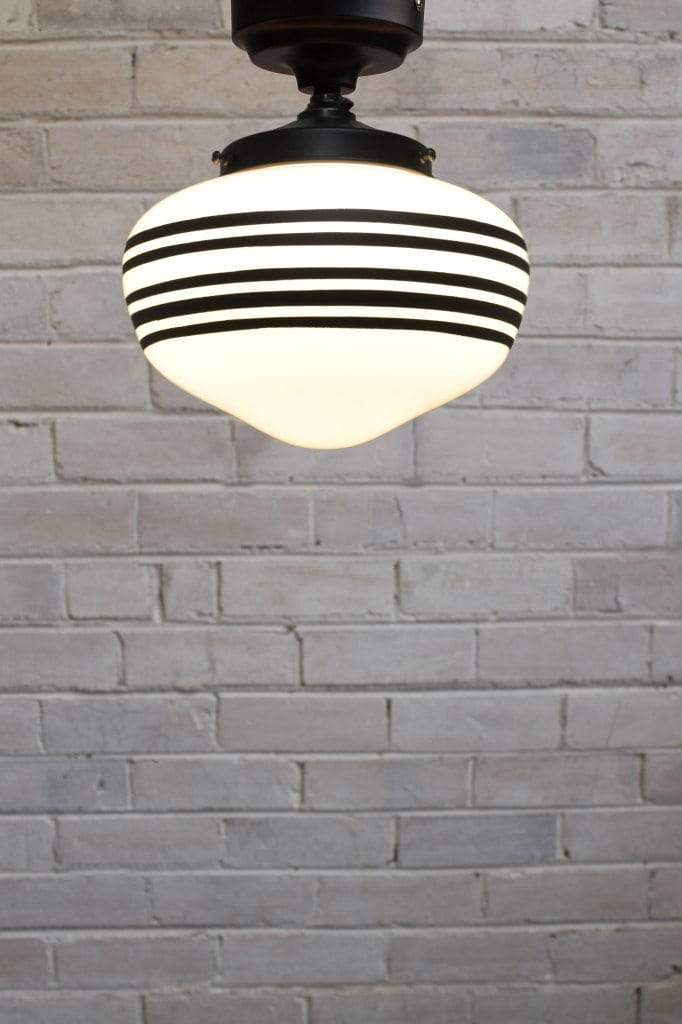 This Washington Batten Light instantly adds vintage charm to a room and is perfect for areas where a pendant light is not suitable. Its handblown opal glass shade comes in three sizes and includes hand painted stripe styles for added flair. Popular in the 1920s, this schoolhouse shade is a beautiful reproduction of the classic lighting style found throughout public buildings of the time. Paired with a batten holder that comes in three finish options to offer a versatile selection, it is ideal for cafés, restaurants, homes or offices looking to inject some timeless character. Available only at Fat Shack Vintage!