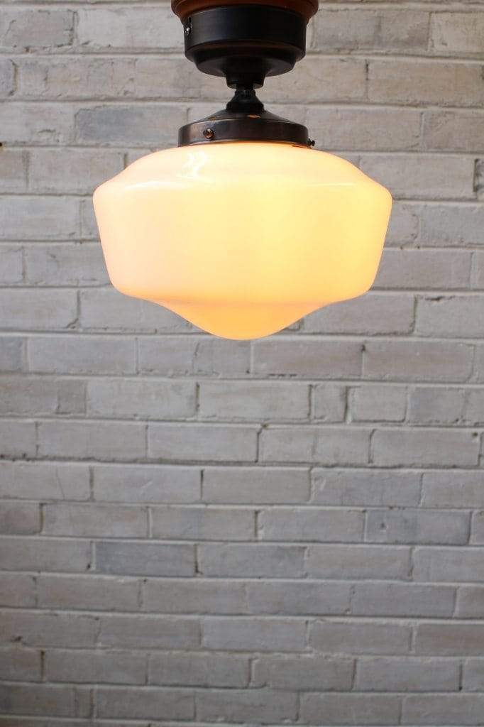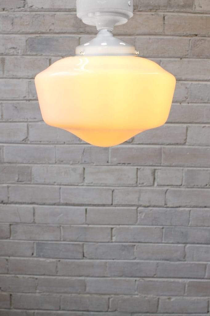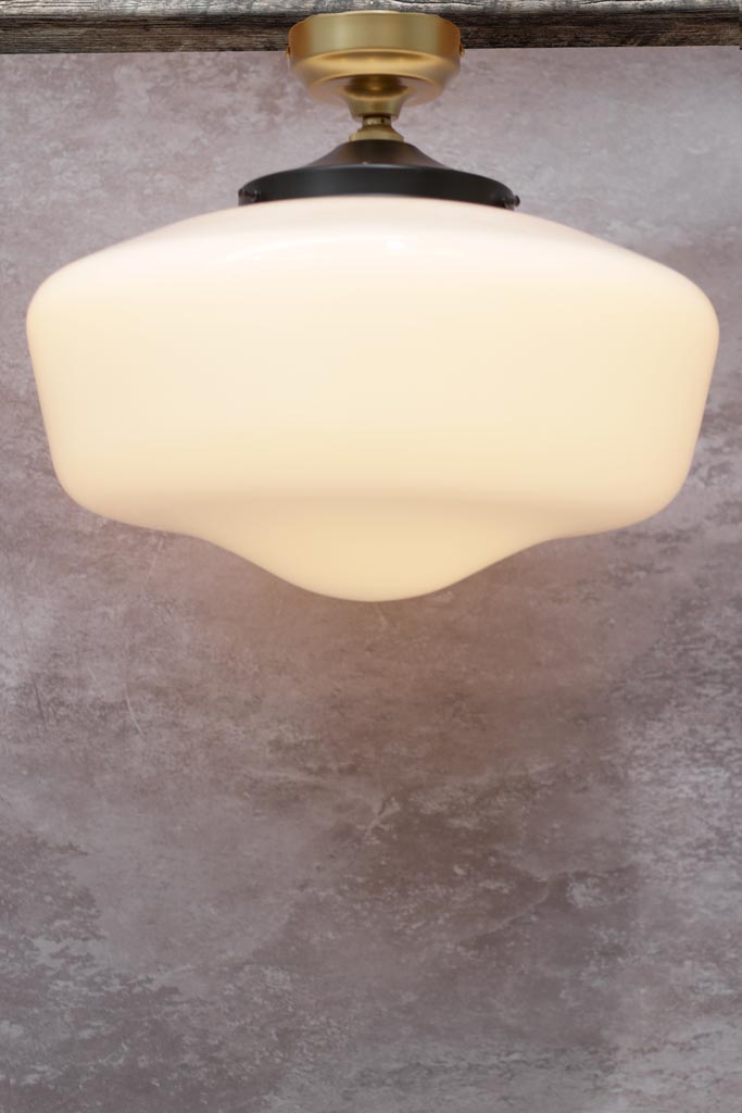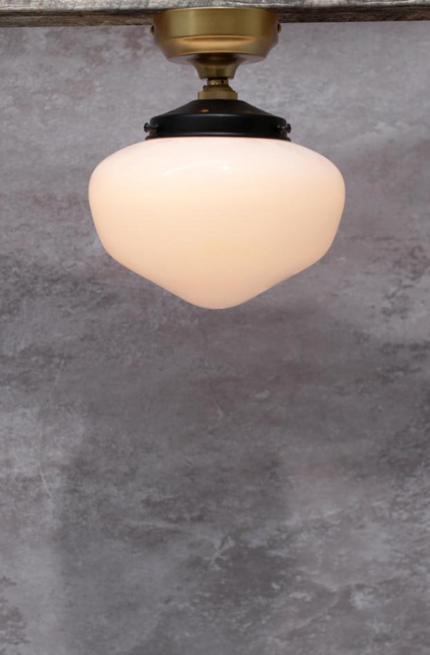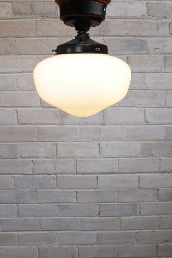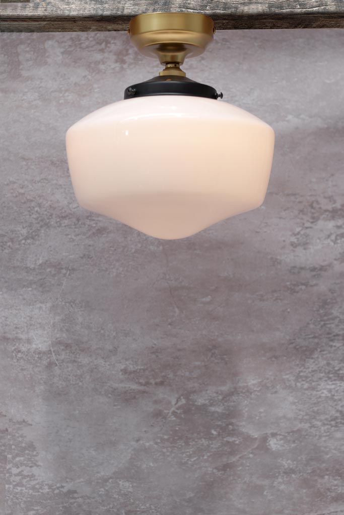This Washington Batten Light instantly adds vintage charm to a room and is perfect for areas where a pendant light is not suitable. Its handblown opal glass shade comes in three sizes and includes hand painted stripe styles for added flair. Popular in the 1920s, this schoolhouse shade is a beautiful reproduction of the classic lighting style found throughout public buildings of the time. Paired with a batten holder that comes in three finish options to offer a versatile selection, it is ideal for cafés, restaurants, homes or offices looking to inject some timeless character. Available only at Fat Shack Vintage!
