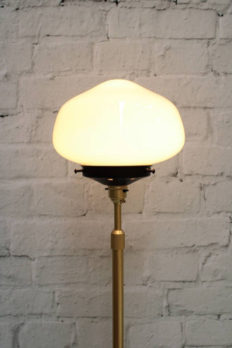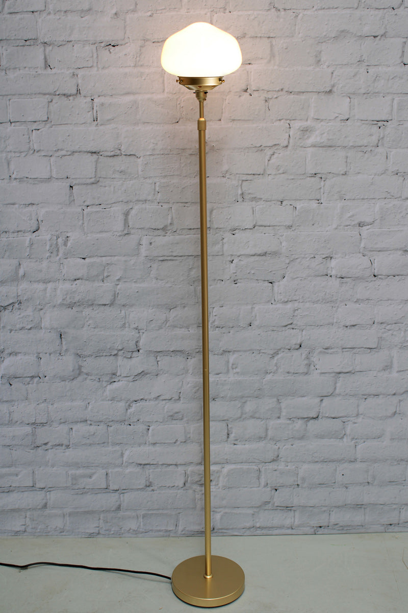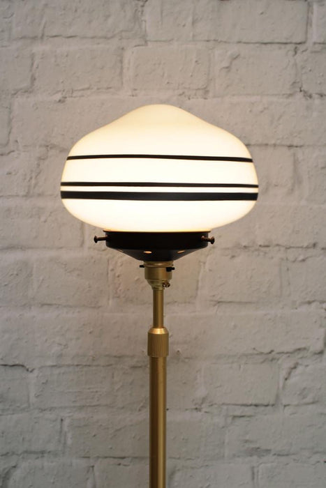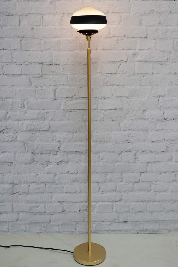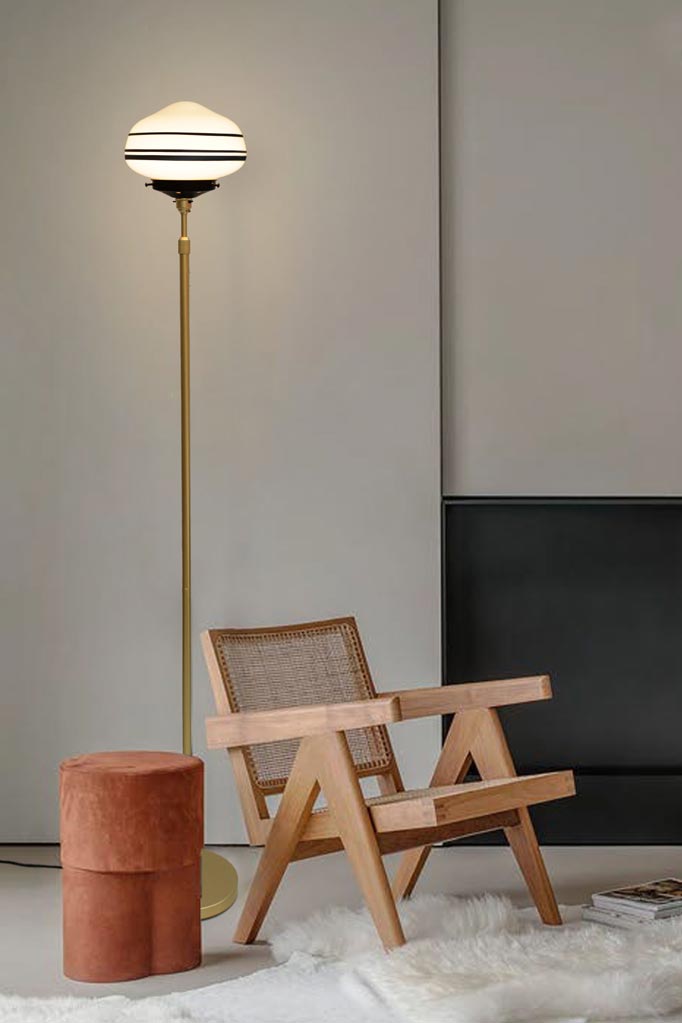 Bringing old world charm with a modern edge, the Washington Floor Lamp adds a distinctive touch to any interior. Its opal glass shade draws from the classic schoolhouse shades of yesteryear and includes hand painted stripe styles for added flair. Paired with a slender metal base that comes in a choice of two finishes to easily accent your decor, this floor lamp offers a novel accent for your bedroom, living room or entryway.