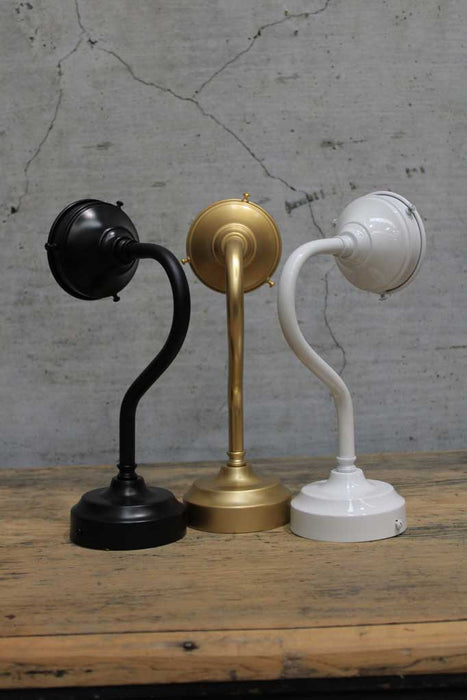 - Handcrafted brass gooseneck sconce in seven finishes