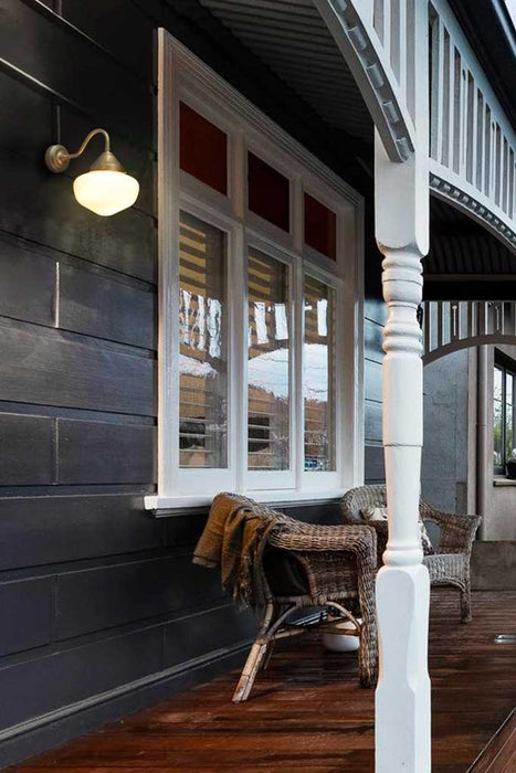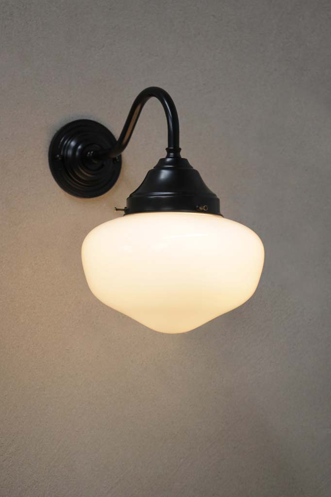 Add timeless and enduring appeal to your residential or commercial space with the Washington Gooseneck Exterior Light. Featuring an opal handblown glass shade, this classic wall light features a handcrafted brass gooseneck sconce that comes in a choice of seven finishes. The opal shade comes in two sizes and includes hand painted stripe options for its smaller size for added character. With an IP44 rating, suited for protected outdoor areas and indoor installation the wall light makes an ideal solution for fine dining restaurants, dining rooms and protected outdoor entertaining spaces.