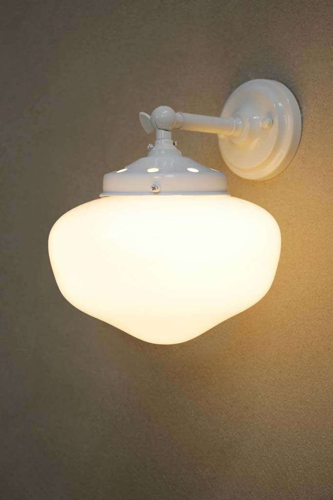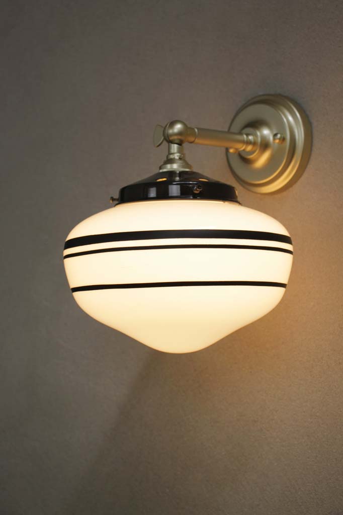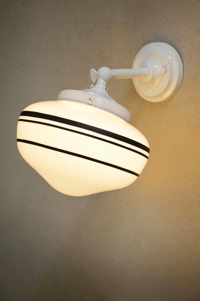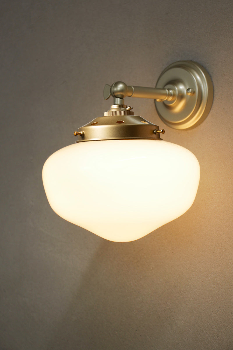 Defining timeless appeal and contemporary flair, the Washington Wall Light brings the best of both worlds to your interiors. Reminiscent of the classic schoolhouse shades of the past, its handblown opal glass shade diffuses light to create a soft ambient glow. Its shade comes in either small or medium size with the small shade left plain or accented with hand painted stripe styles. Paired with a handcrafted brass or adjustable steel wall arm in a selection of finishes, this wall light makes a versatile addition to your living room, hallway and café interior.