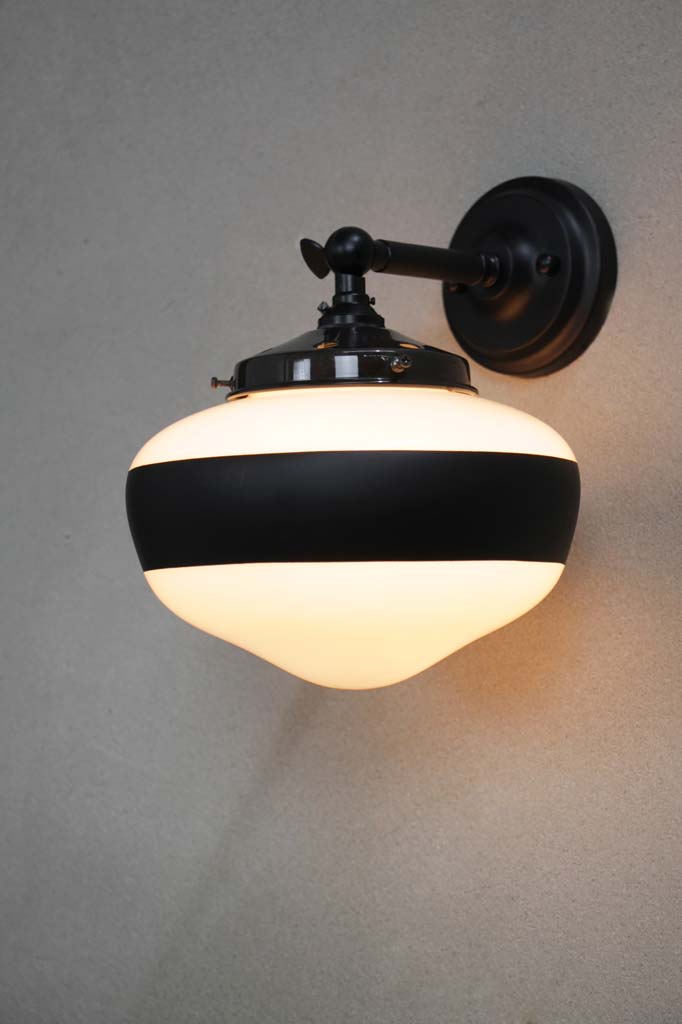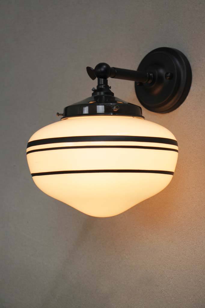 - The glass shade is fitted to the wall sconce with a matching gallery, except for the gold/brass steel sconce and striped shade variations, which are paired with a black gallery.