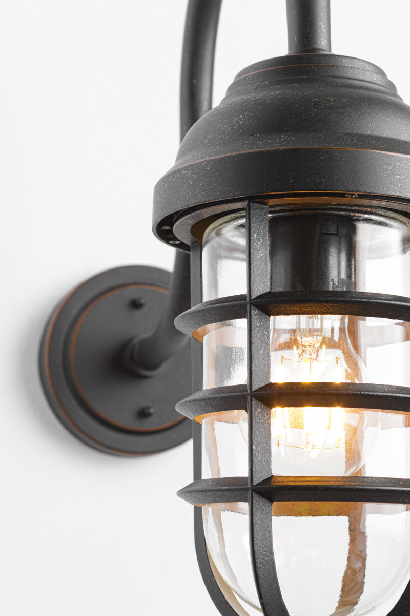 With its classic design and outdoor durability, the Wharf Exterior Wall Light suits both indoor and outdoor applications. Its antique bronze finish along with it's robust build is a modern refresh on a vintage nautical design. With its IP44 rating, it is ideal for decks, verandahs, beer garden areas or front entrances. Exclusive to Fat Shack Vintage.