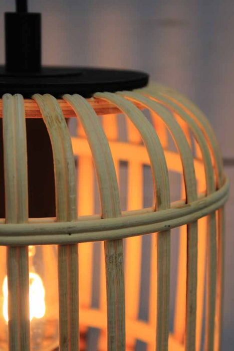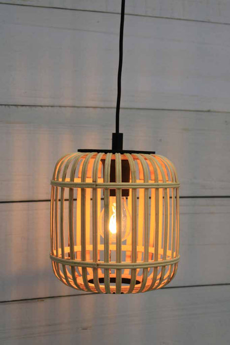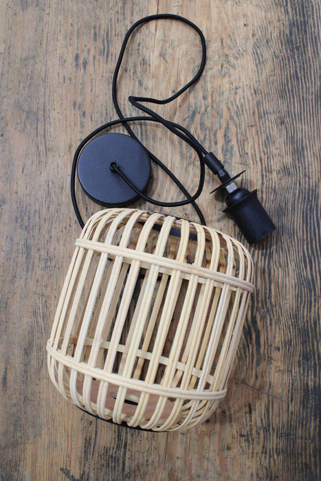 The Woodford Pendant light brings a touch of refined coastal charm to instantly update contemporary interiors. Complete with a natural finish, its wicker shade is formed from cane and accented with black metalware to offer an aesthetic lighting feature. Mounted by a cable suspension, the pendant light comes in two shade sizes. An ideal lighting solution for kitchens, living rooms and dining spaces, the pendant light offers a subtle highlight for modern spaces and coastal style décor.